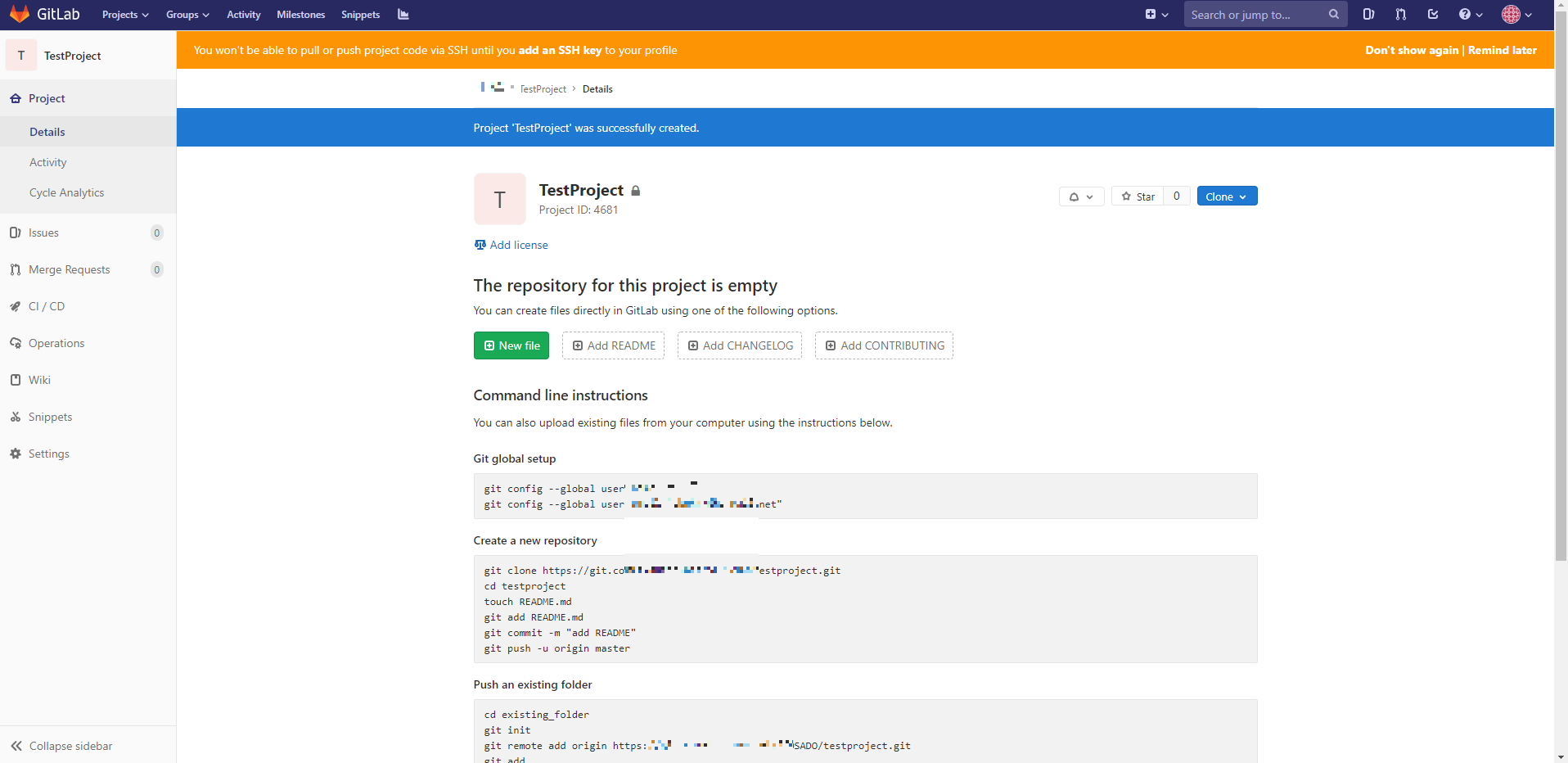 - GitLab에서 신규 Project(리포지토리)를 생성후 Clone까지 진행해보자.
